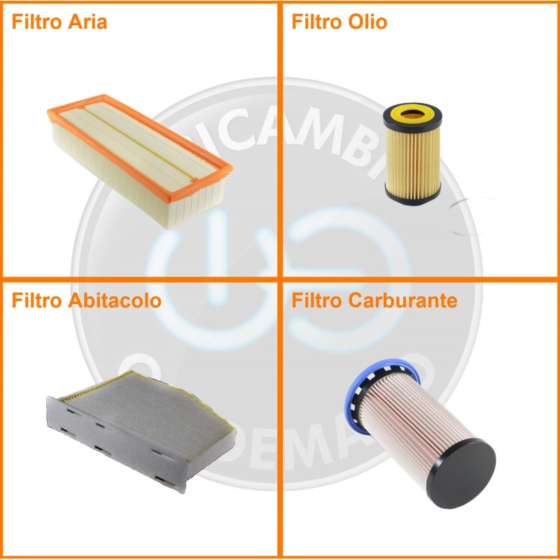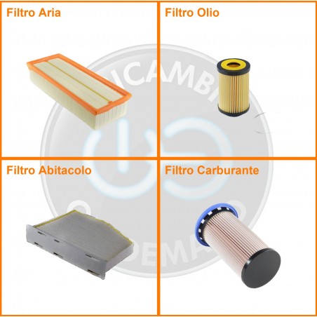 ComposizioneFiltro abitacolo, Filtro aria, Filtro gasolio, Filtro olio