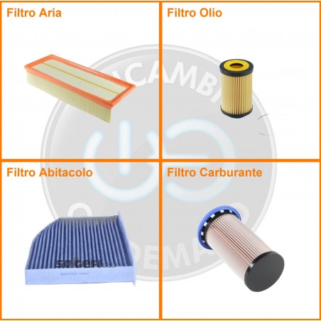 ComposizioneFiltro abitacolo ai carboni attivi, Filtro aria, Filtro gasolio, Filtro olio