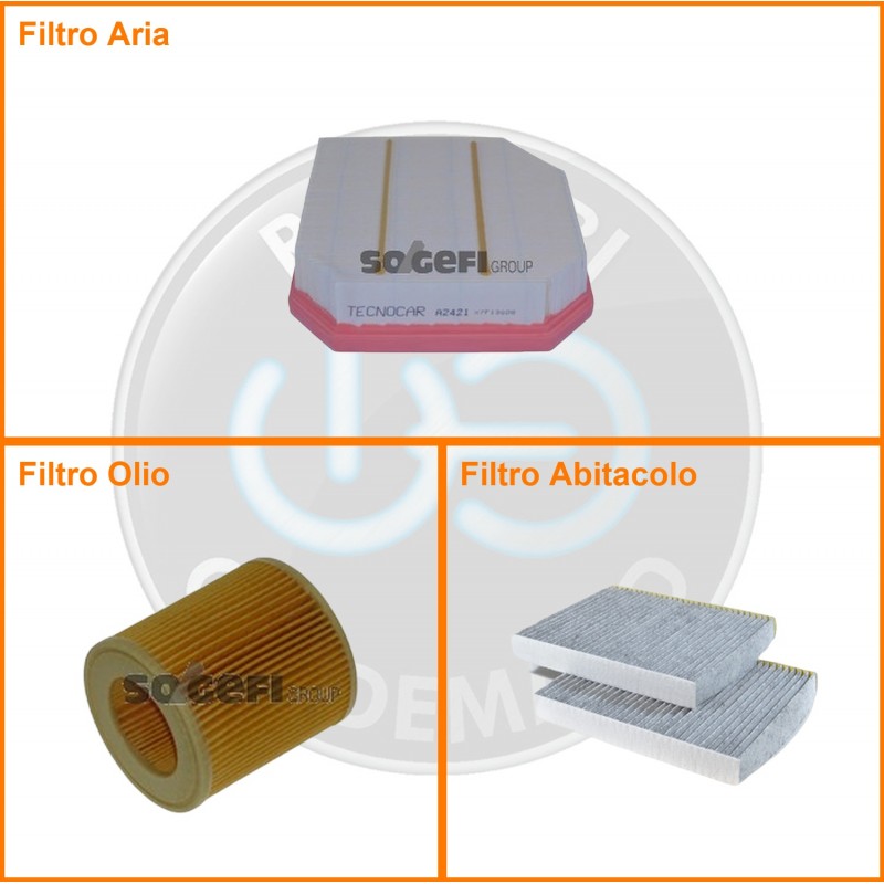 ComposizioneFiltro olio, Filtro abitacolo ai carboni attivi, Filtro aria