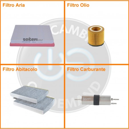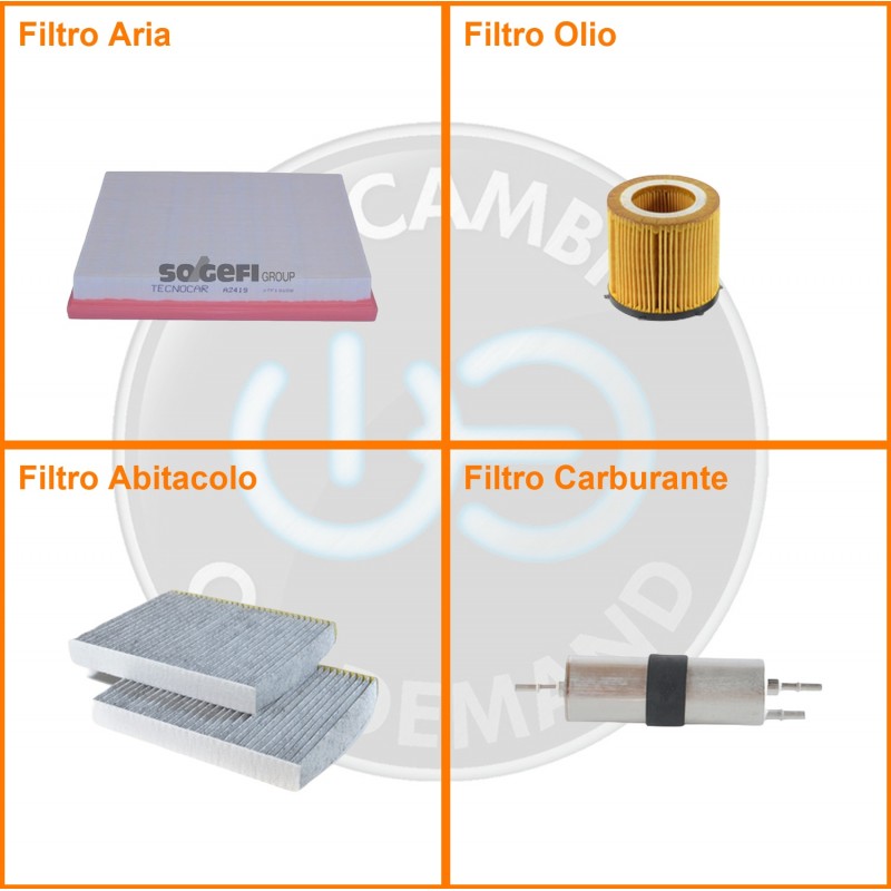 ComposizioneFiltro benzina, Filtro olio, Filtro abitacolo ai carboni attivi, Filtro aria