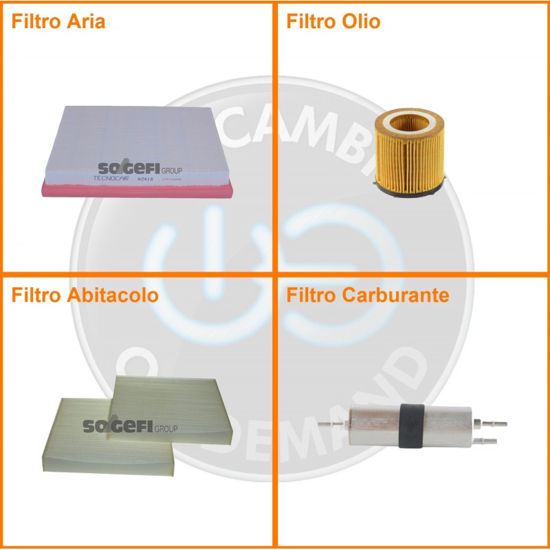 ComposizioneFiltro benzina, Filtro olio, Filtro abitacolo, Filtro aria
