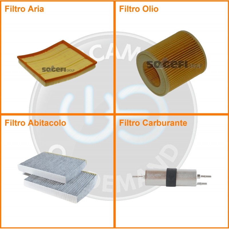 ComposizioneFiltro benzina, Filtro olio, Filtro abitacolo ai carboni attivi, Filtro aria