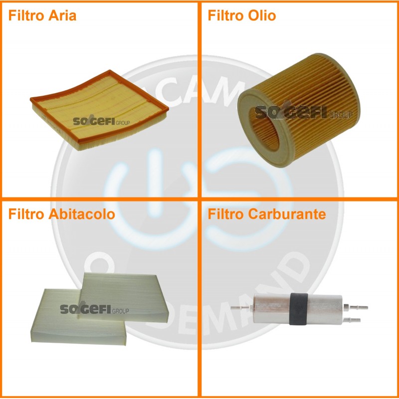 ComposizioneFiltro benzina, Filtro olio, Filtro abitacolo, Filtro aria