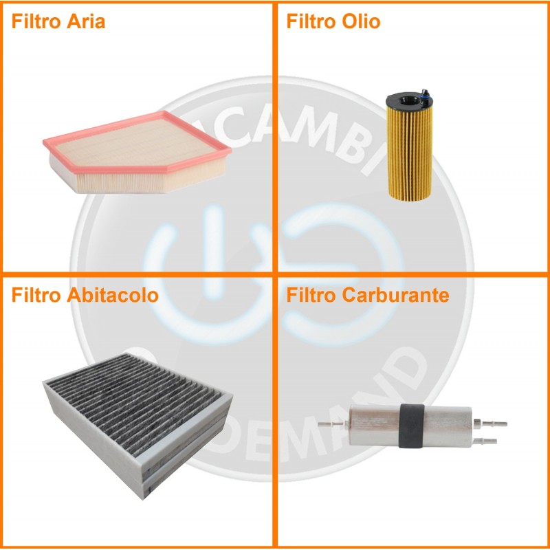 ComposizioneFiltro benzina, Filtro olio, Filtro abitacolo ai carboni attivi, Filtro aria