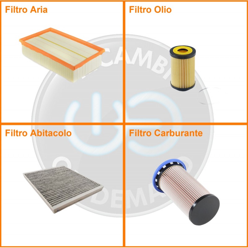 ComposizioneFiltro gasolio, Filtro olio, Filtro abitacolo ai carboni attivi, Filtro aria