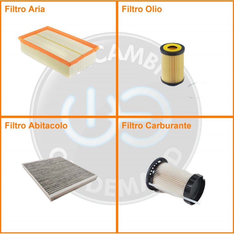 ComposizioneFiltro olio, Filtro abitacolo ai carboni attivi, Filtro aria, Filtro gasolio