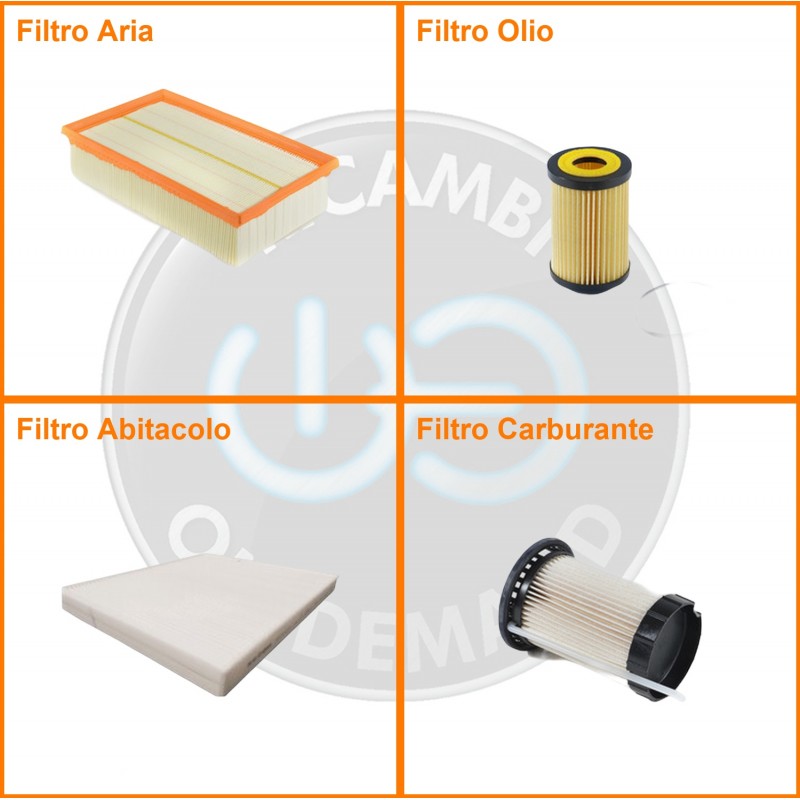 ComposizioneFiltro gasolio, Filtro olio, Filtro abitacolo, Filtro aria