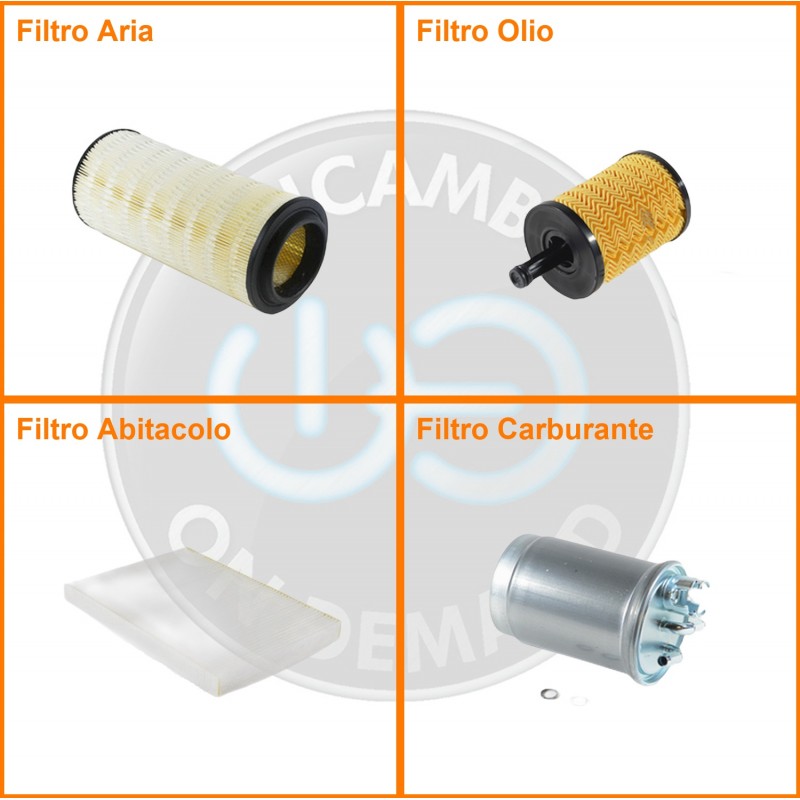 ComposizioneFiltro gasolio, Filtro olio, Filtro abitacolo, Filtro aria