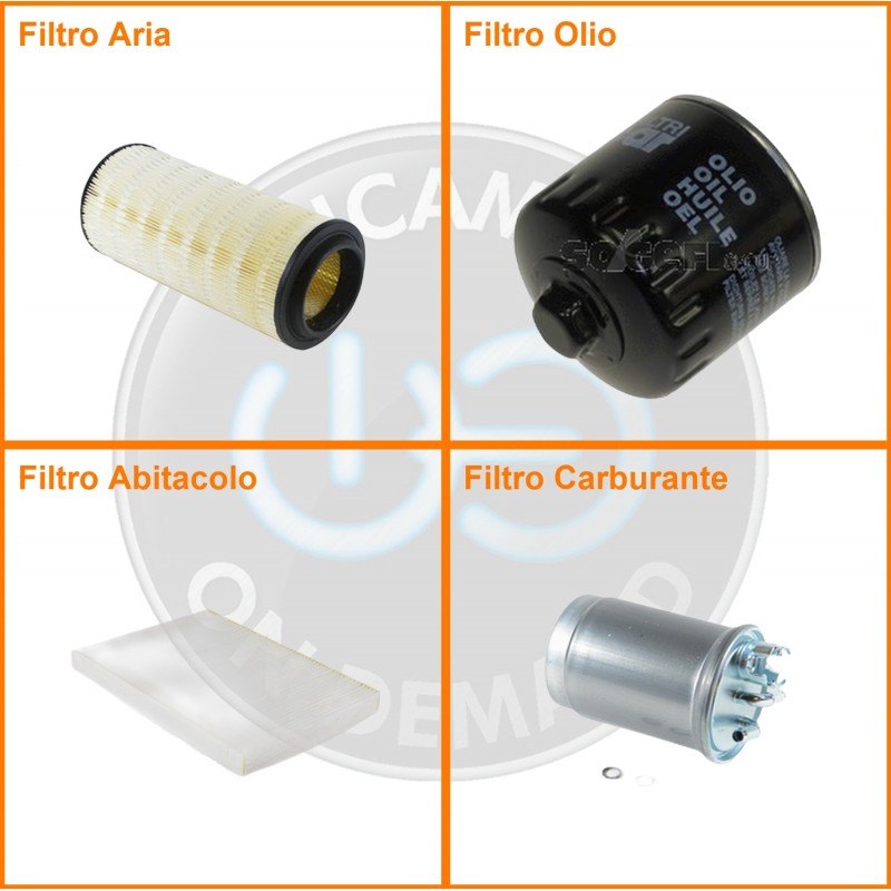 ComposizioneFiltro gasolio, Filtro olio, Filtro abitacolo, Filtro aria