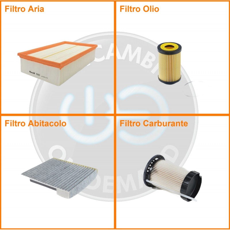 ComposizioneFiltro olio, Filtro abitacolo ai carboni attivi, Filtro aria, Filtro gasolio