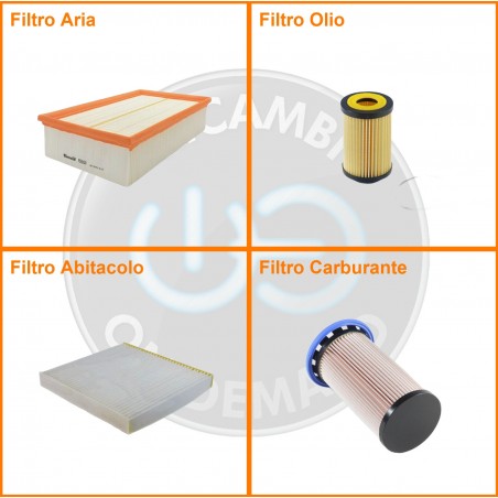 ComposizioneFiltro olio, Filtro abitacolo, Filtro aria, Filtro gasolio