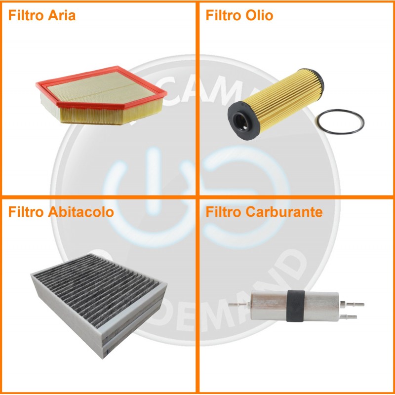 ComposizioneFiltro benzina, Filtro olio, Filtro abitacolo ai carboni attivi, Filtro aria