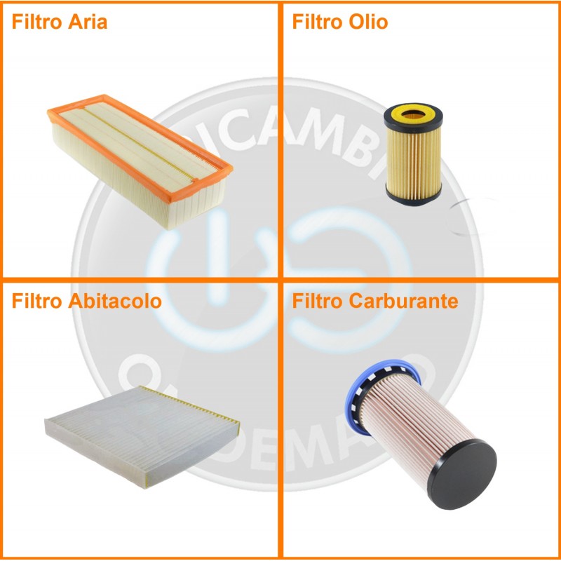 ComposizioneFiltro olio, Filtro abitacolo, Filtro aria, Filtro gasolio