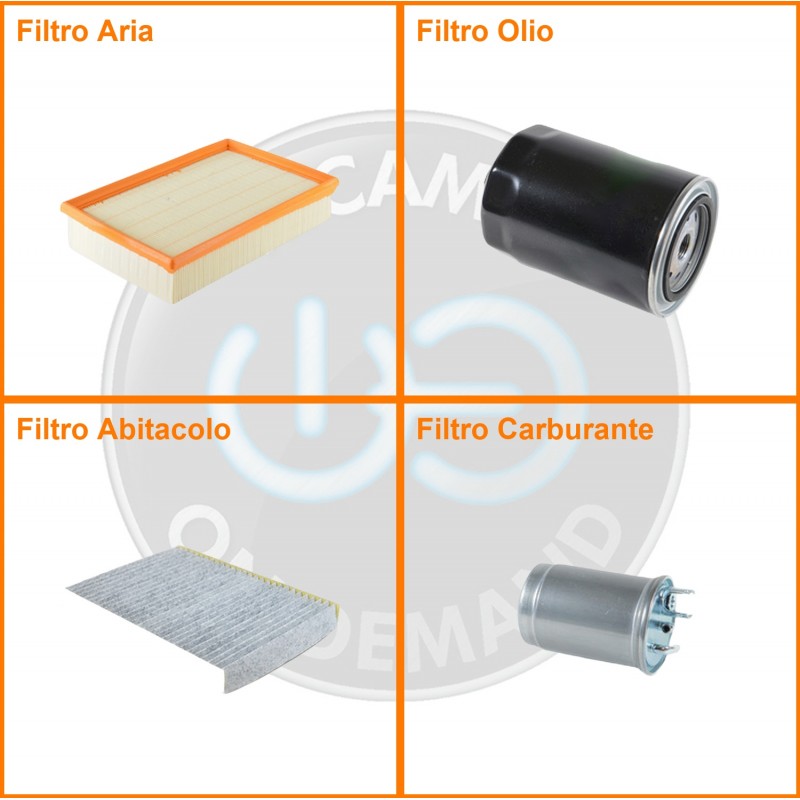 ComposizioneFiltro olio, Filtro abitacolo ai carboni attivi, Filtro aria, Filtro gasolio