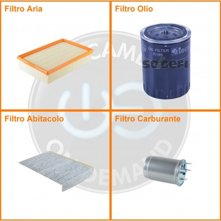 ComposizioneFiltro abitacolo ai carboni attivi, Filtro aria, Filtro gasolio, Filtro olio