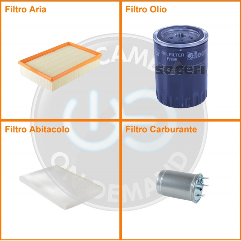 ComposizioneFiltro olio, Filtro abitacolo, Filtro aria, Filtro gasolio