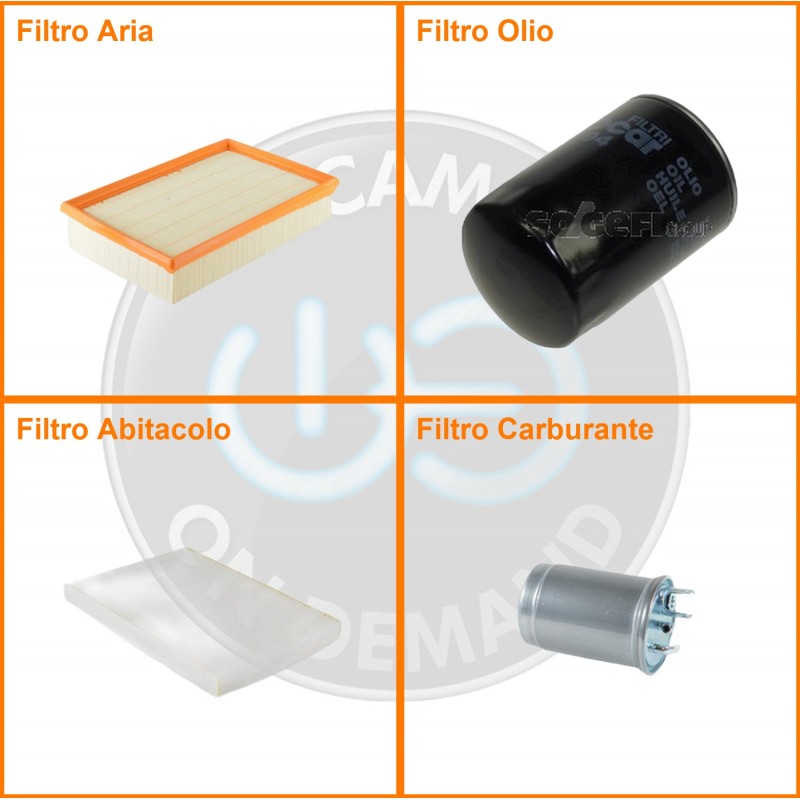 ComposizioneFiltro abitacolo, Filtro aria, Filtro gasolio, Filtro olio