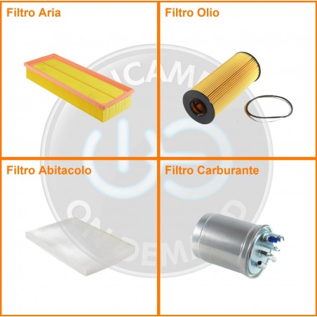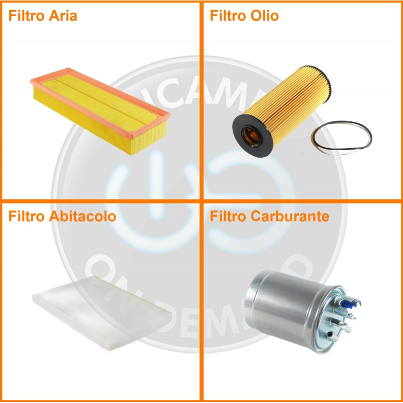 ComposizioneFiltro gasolio, Filtro olio, Filtro abitacolo, Filtro aria