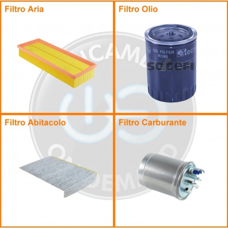 ComposizioneFiltro gasolio, Filtro olio, Filtro abitacolo ai carboni attivi, Filtro aria