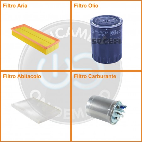 ComposizioneFiltro abitacolo, Filtro aria, Filtro gasolio, Filtro olio