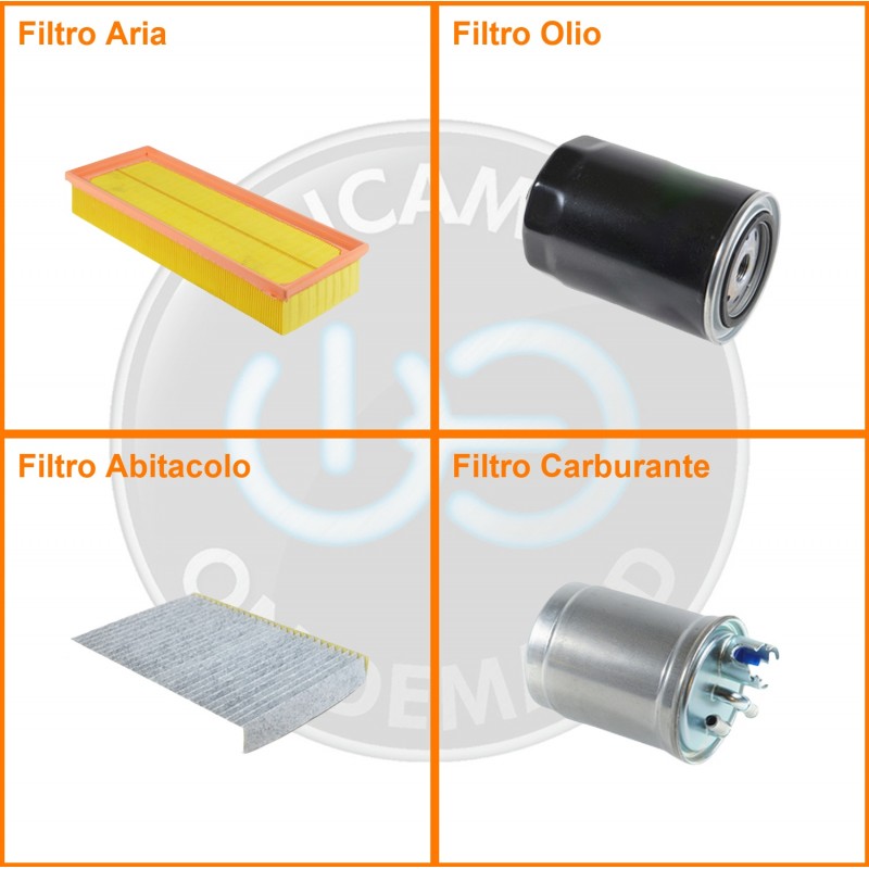 ComposizioneFiltro abitacolo ai carboni attivi, Filtro aria, Filtro gasolio, Filtro olio