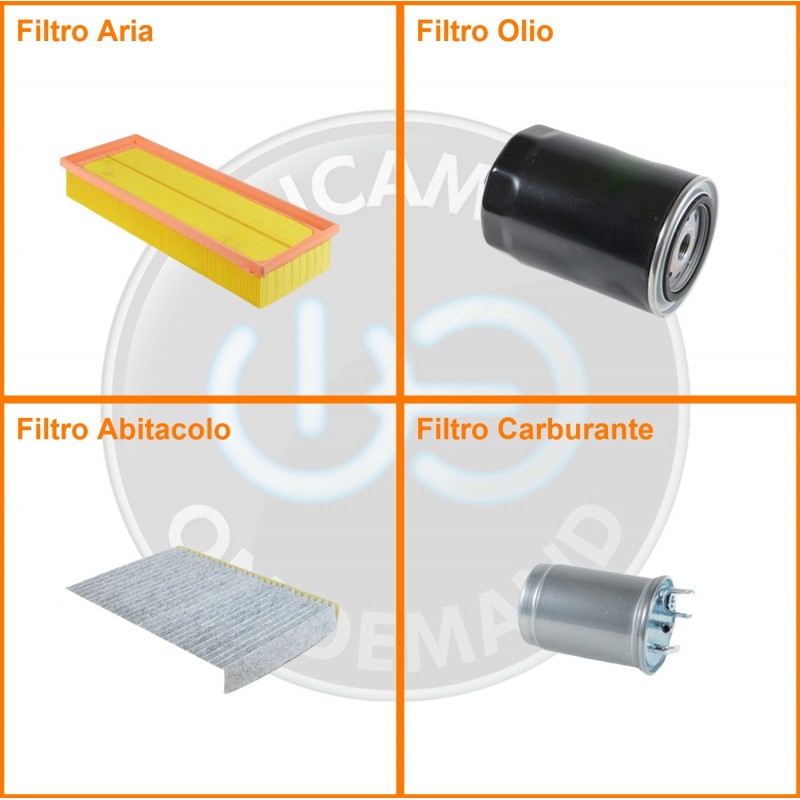 ComposizioneFiltro gasolio, Filtro olio, Filtro abitacolo ai carboni attivi, Filtro aria