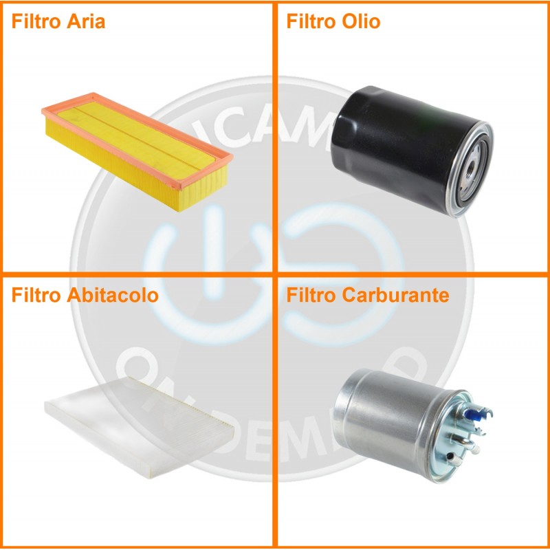 ComposizioneFiltro gasolio, Filtro olio, Filtro abitacolo, Filtro aria