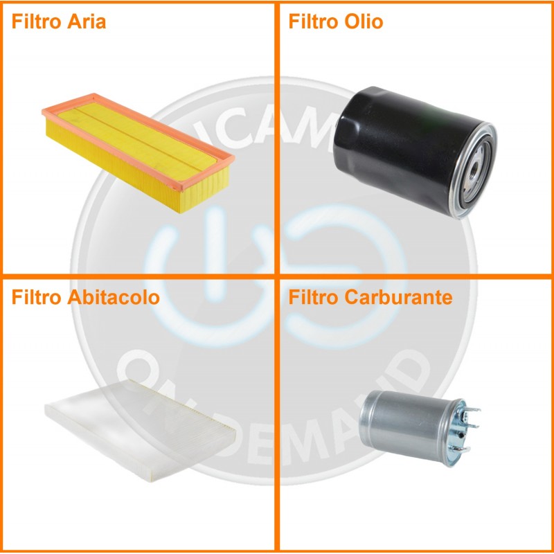 ComposizioneFiltro gasolio, Filtro olio, Filtro abitacolo, Filtro aria