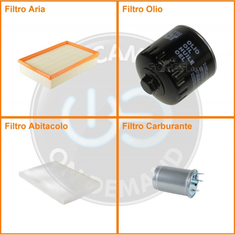 ComposizioneFiltro abitacolo, Filtro aria, Filtro gasolio, Filtro olio