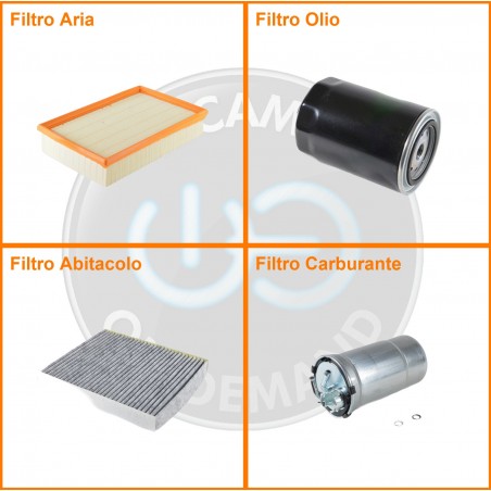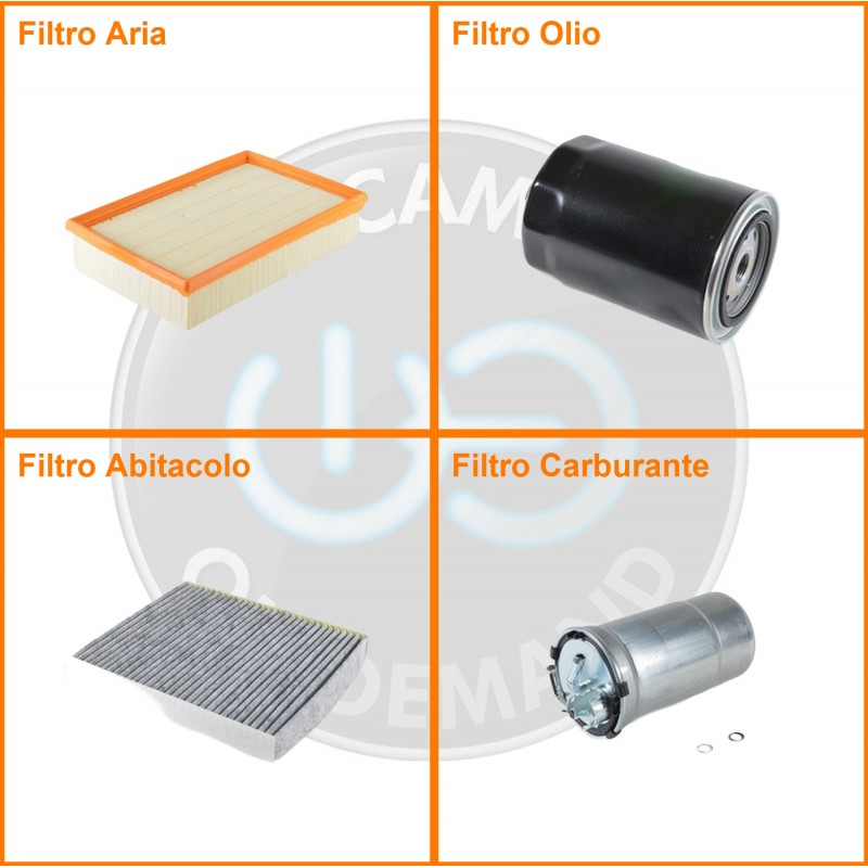 ComposizioneFiltro gasolio, Filtro olio, Filtro abitacolo ai carboni attivi, Filtro aria
