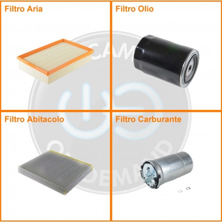 ComposizioneFiltro gasolio, Filtro olio, Filtro abitacolo, Filtro aria