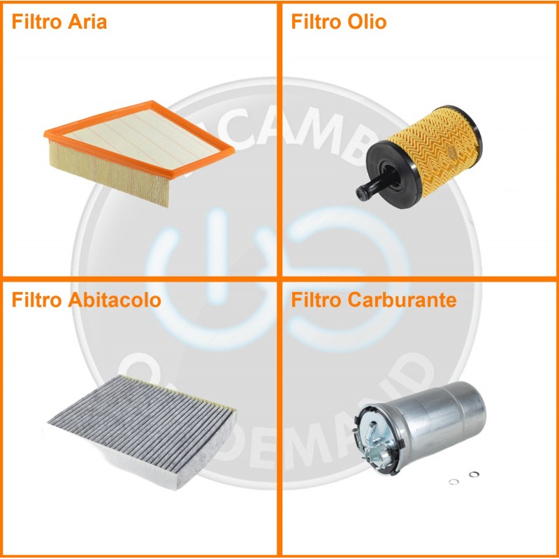ComposizioneFiltro olio, Filtro abitacolo ai carboni attivi, Filtro aria, Filtro gasolio