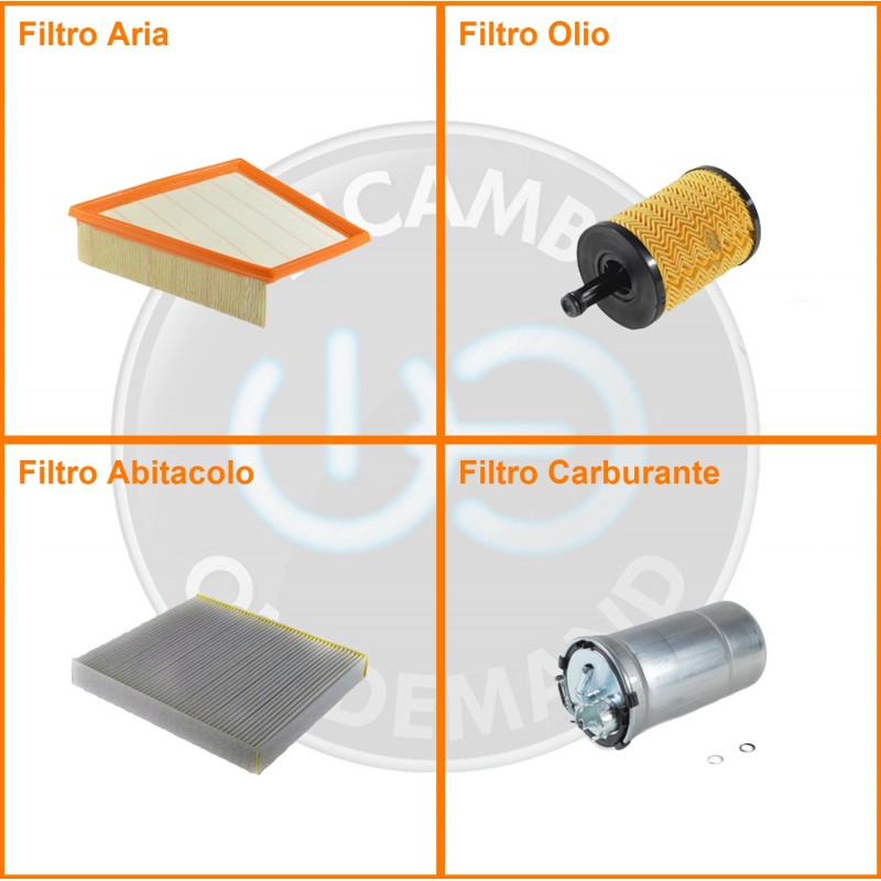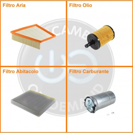 ComposizioneFiltro gasolio, Filtro olio, Filtro abitacolo, Filtro aria