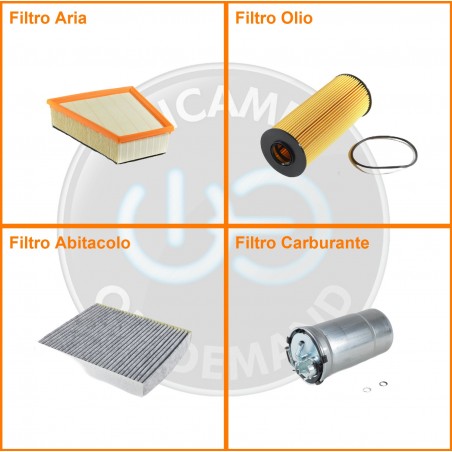 ComposizioneFiltro abitacolo ai carboni attivi, Filtro aria, Filtro gasolio, Filtro olio