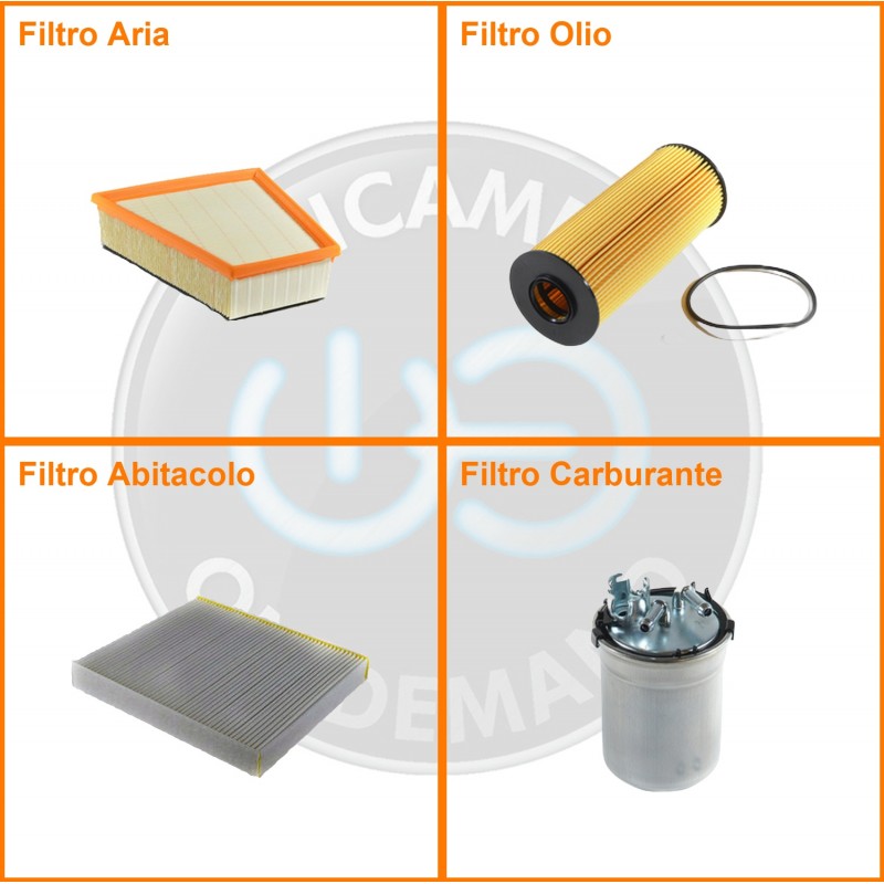 ComposizioneFiltro gasolio, Filtro olio, Filtro abitacolo, Filtro aria