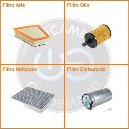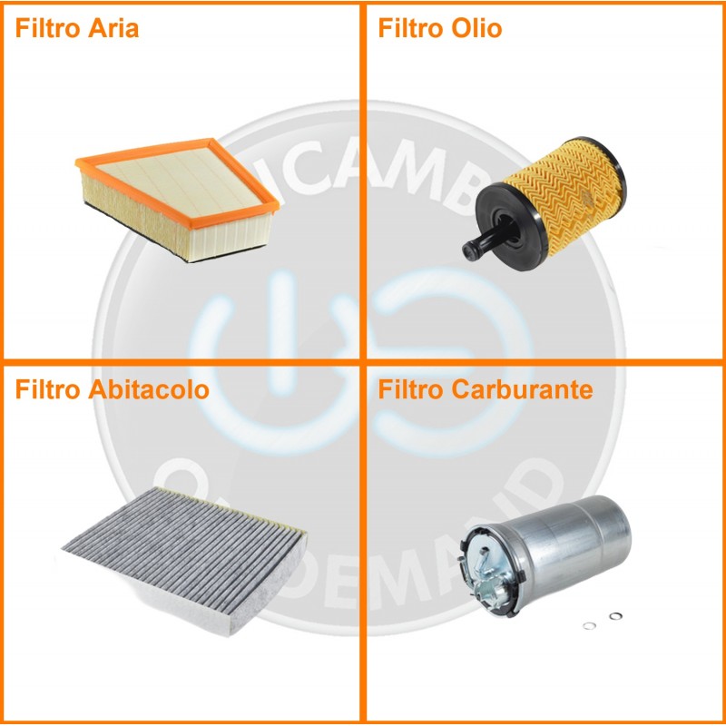 ComposizioneFiltro abitacolo ai carboni attivi, Filtro aria, Filtro gasolio, Filtro olio