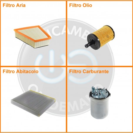 ComposizioneFiltro gasolio, Filtro olio, Filtro abitacolo, Filtro aria