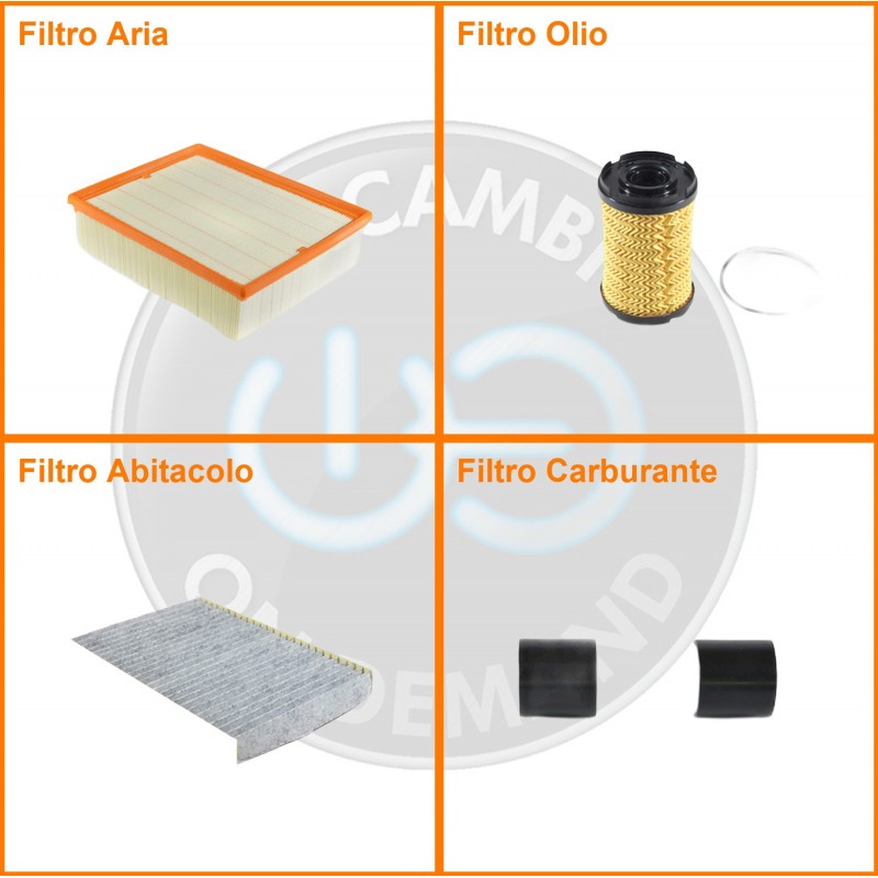 ComposizioneFiltro abitacolo ai carboni attivi, Filtro aria, Filtro gasolio, Filtro olio