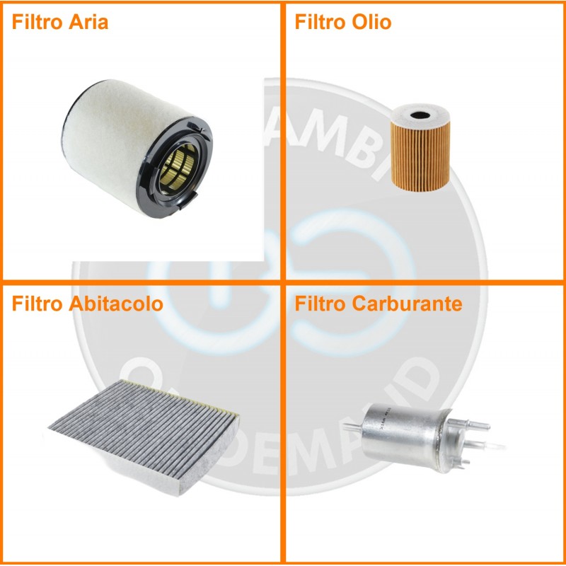ComposizioneFiltro aria, Filtro benzina, Filtro olio, Filtro abitacolo ai carboni attivi