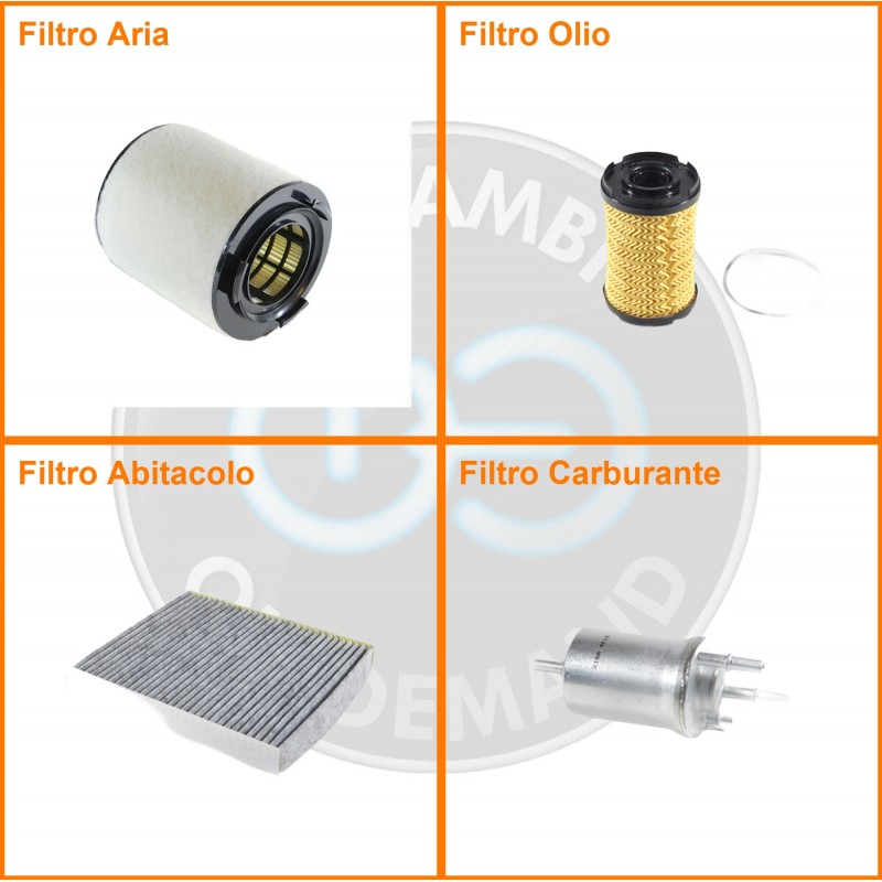 ComposizioneFiltro abitacolo ai carboni attivi, Filtro aria, Filtro benzina, Filtro olio
