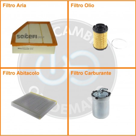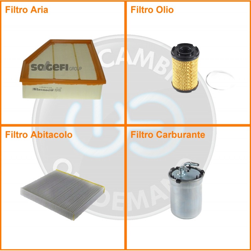 ComposizioneFiltro abitacolo, Filtro aria, Filtro gasolio, Filtro olio