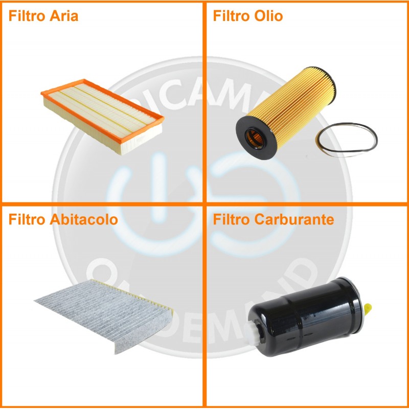 ComposizioneFiltro gasolio, Filtro olio, Filtro abitacolo ai carboni attivi, Filtro aria