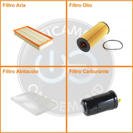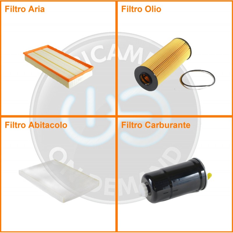 ComposizioneFiltro gasolio, Filtro olio, Filtro abitacolo, Filtro aria