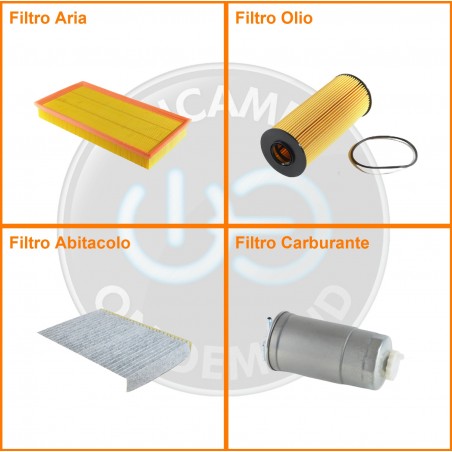 ComposizioneFiltro gasolio, Filtro olio, Filtro abitacolo ai carboni attivi, Filtro aria