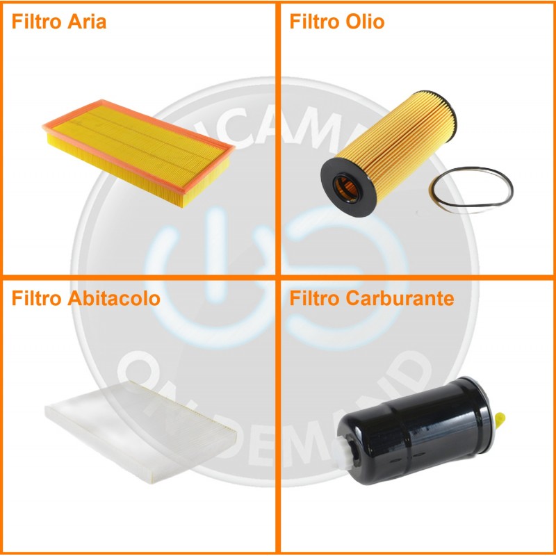 ComposizioneFiltro gasolio, Filtro olio, Filtro abitacolo, Filtro aria