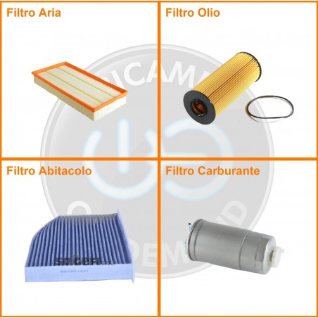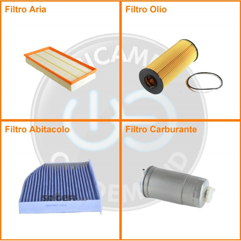 ComposizioneFiltro abitacolo ai carboni attivi, Filtro aria, Filtro gasolio, Filtro olio