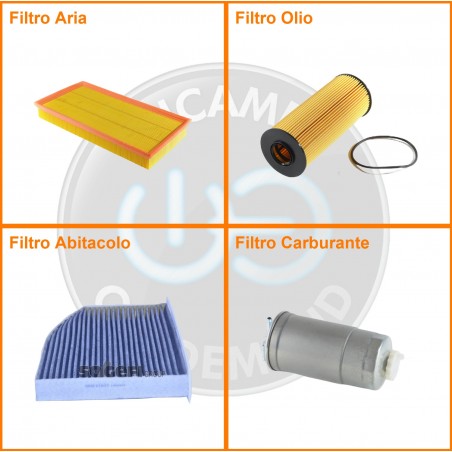 ComposizioneFiltro gasolio, Filtro olio, Filtro abitacolo ai carboni attivi, Filtro aria