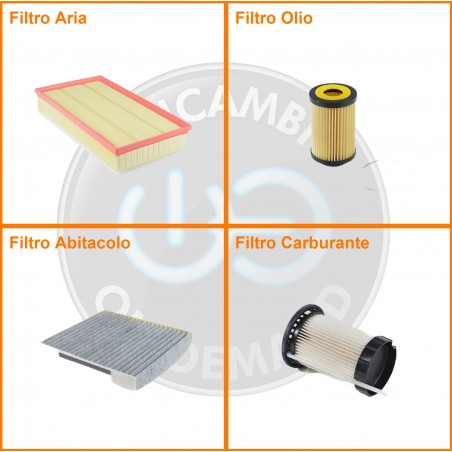 ComposizioneFiltro gasolio, Filtro olio, Filtro abitacolo ai carboni attivi, Filtro aria