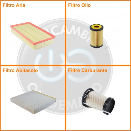 ComposizioneFiltro gasolio, Filtro olio, Filtro abitacolo, Filtro aria