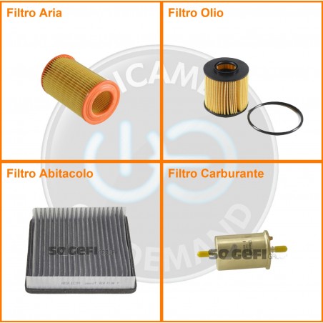 ComposizioneFiltro gasolio, Filtro olio, Filtro abitacolo ai carboni attivi, Filtro aria